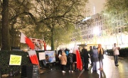 صورتا الخواجة ومشيمع على مبنى سفارة البحرين في لندن