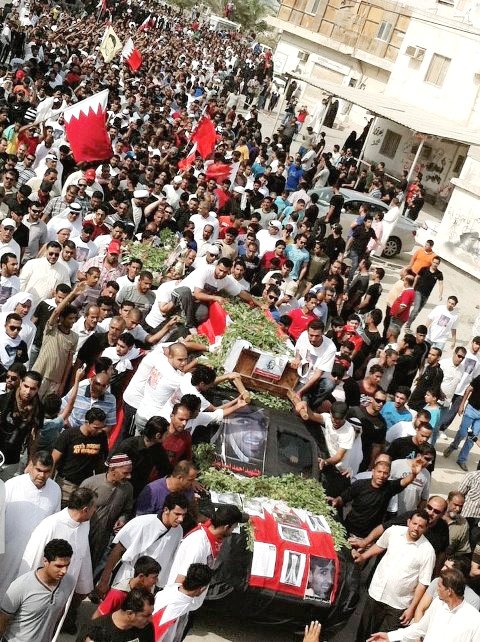 لكن الآلاف شاركوا في التأبين، حيث هتف الحضور "ليسقط (ملك البحرين) حمد" بن عيسى آل خليفة، على ما أفاد الشهود من دون الإشارة إلى ضحايا في المواجهات.