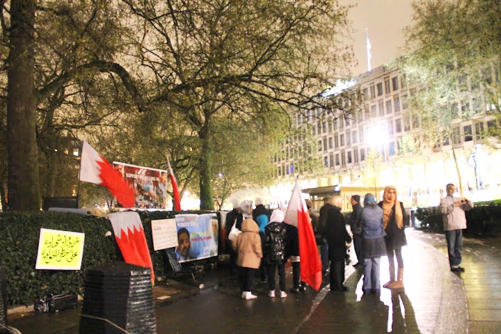 وفي لندن، نظمت المعارضة البحرينية اعتصاما أمام السفارة الدنماركية لحثها على مواصلة ضغوطها على ااسلطات البحرينية من أجل الافراج عن الخواجة، ثم نظمت مسيرة إلى السفارة البحرينية. وكان المعارضة اعتصمت يوم الخميس الماضي أمام السفارة السعودية ثم نظمت مسيرة إلى السفارة الأميركية بمشاركة الناشطَيْن البحرينيين المضربين عن الطعام، الأخوين علي مشيمع وعبد علي موسى.