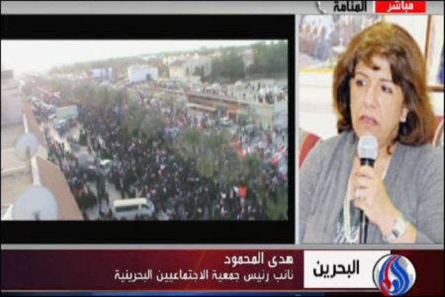وقالت المحمود لقناة "العالم" الاخبارية إن "طاولة الحوار هي الحل الأنجع للأزمة التي تعصف بالبحرين"، مشيرة إلى أن "العنف مرفوض من قبل الجميع وأن تقرير بسيوني حمل الجميع مسؤولية أعمال العنف التي تجري في البلاد"، داعية إلى "معالجة هذه الأمور بموضوعية وعدم اللجوء إلى العنف".
