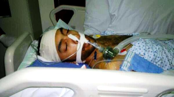 وأشاروا إلى أن علي تعرض إلى كسر في الجمجمة، ولم يوضح الطبيب مقدار الضرر الذي تعرض له الدماغ، فيما أشاروا إلى أن الأشعة التي أجريت بعد العملية كشفت وجود تجلط للدم بين الجلد والجمجمة، وأنه لن يحتاج لعملية ثانية.