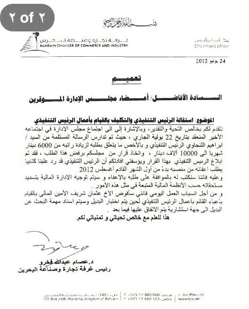 مرآة البحرين: وافق مجلس إدارة تجارة وصناعة البحرين على استقالة الرئيس التنفيذي للغرفة إبراهيم اللنجاوي.