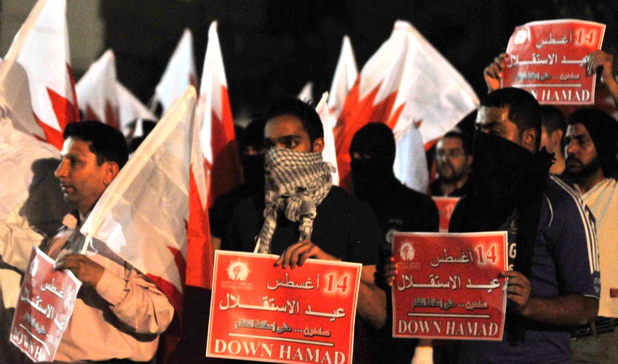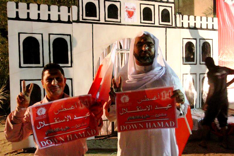 فيما خرجت تظاهرة في جدحفص احتفالا بعيد الاستقلال، ونادى المتظاهرون بإسقاط النظام وحق تقرير المصير، في مسيرة انتهت بالقرب من منزل رئيس حركة الحريات والديمقراطية (حق) حسن مشيمع، قبل أن تقتحم المرتزقة البلدة وتطلق الغازات السامة على الأحياء.