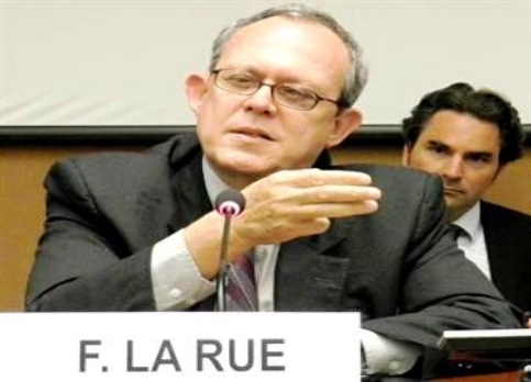 وكان "فرانك لا رو" المقرر الخاص المعني بالحق في حرية الرأي والتعبير، قد قال إن القمع المستمر لحرية التعبير في البحرين يتعارض مع القانون الدولي والمعايير التي تحتم عدم محاكمة الأفراد على خطابهم السياسي السلمي. وحث السلطات البحرينية على أن تتخذ جميع التدابير اللازمة لضمان حرية التعبير لجميع الأفراد في البحرين، سواء من خلال وسائل الإعلام الاجتماعية أو غير ذلك.