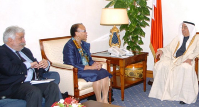 محمد بن مبارك آل خليفة في مستقبلا ممثلي منظمة العمل الدولية مارس/آذار الماضي
