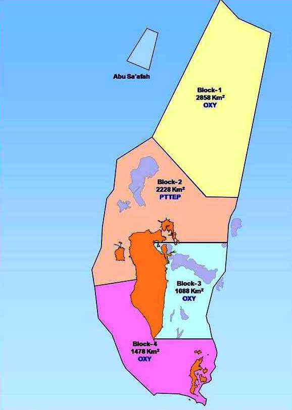 ![]() صورة توضح توزيع القواطع البحرية حسب الشركة التي فازت بعطاء التنقيب |