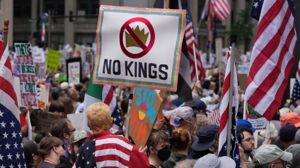 وعاد الشعار في الشارع الأمريكي احتجاجاً على نزعات الرئيس دونالد ترامب الاستبدادية، ومؤخراً شهدت الولايات المتحدة مظاهرات عارمة قادتها حركة لا ملوك احتجاجاً على الحرب العدوانية التي تشنها الإدارة الأمريكية على إيران، لكن الشعار لا يحكي عن تحرك احتجاجي وحسب، بل عن حركة عميقة تتمرد على خطف الديمقراطية لصالح الأوليغارشية (حكم القلة) المتمصلحة من الحروب.