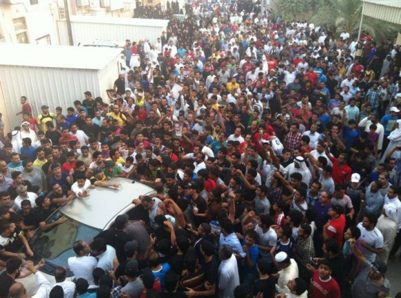 مرآة البحرين: استقبل آلاف المؤيدين أمين عام تيار «الوفاء» عبدالوهاب حسين، بمنطقة سكنه في النويدرات، لدى الإفراج المؤقت عنه اليوم. ورفعوا شعارات «بالروح بالدم نفديك يا بوحسين» و«يسقط حمد».