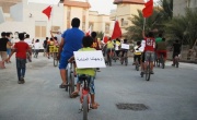 مرآة البحرين (خاص): مبدع بكل الوجوه من صمّم (كليب) مسيرة الدراجات الهوائية لأطفال منطقة المعامير، وهم يحملون على ظهورهم شعار(وجهتنا المنامة) تحشيدا لتقرير المصير الذي أعلن عنه ائتلاف ثورة 14 فبراير بالعاصمة المنامة اليوم الجمعة.