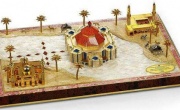 مجسم الكنيسة الذي قدمه الملك للبابا مرصع بمعادن نفيسة... ويحيط به مسجدا الخميس والفاتح