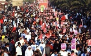 مرآة البحرين (خاص): شارك عشرات الآلاف في تظاهرة دعت لها المعارضة البحرينية غرب العاصمة المنامة في الذكرى الثالثة للثورة، متعهدين بالاستمرار حتى تحقيق المطالب.