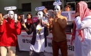 مرآة البحرين: واصل نشطاء كوريين يمثلون 31 منظمة تدعو للسلام وتعارض بيع الأسلحة للحكومة البحرينية احتجاجاتهم في العاصمة سيول، حيث أقاموا اليوم مؤتمرا صحافيا حضرته الصحافة الكورية وأدروا بيانا رفضا لاستكمال صفقة تزود شركات كورية بموجبها البحرين بشحنة تفوق 1.5 عبوة من الغازات.