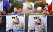 مرآة البحرين (خاص): بالأمس، تقدم عشرات الأطفال المسيرة التي خرجت من منطقة الدير، وهم يضعون ضمادات على أعينهم ويرفعون صور الطفل أحمد النهام (5 سنوات).