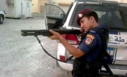 مرآة البحرين (خاص): في هذه الصورة و التي على ما يبدو من تشرين الأول/أكتوبر 2011، ضابط شرطة بحريني يصوب بندقيته.