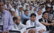 Photos posted on social media outlets showed dozens of worshippers wearing Palestinian keffiyeh alongside the Imam of Friday prayer of the Imam Al-Sadiq mosque in Diraz.