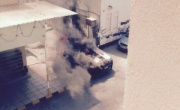 Bahrain Mirror (Exclusive): Activists posted a video on social media showing a security patrol that bursted into flames near Al-Ghadeer Mosque in Bahrain’s Sanad area on Friday (August 14, 2015).