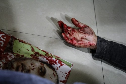 The shotgun mired the youth’s face and body with blood. Being shocked by his injury, the youth started running towards the other protestors as if he did not believe this ill and brutal treatment. He did not utter but groans and the blood which covered his face and body left prints on the street. His exhausted body fell to the ground after he had felt safe among the other protestors, however, he insisted to stay holding something tightly until the last moment: it’s Sheikh Salman’s photo, covered in blood but remaining high.
