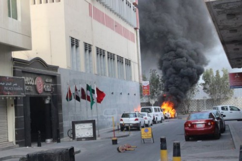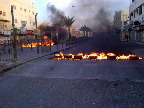 Other protestors shut down main highways across the country since the early hours of the morning, causing major traffic jams. Witnesses reported that most entrances to towns were blocked by rocks and other barriers. Traffic; however, was completely paralyzed on the road leading to Manama suburbs: Jedhafs, Sanabes and Diah after demonstrators barricaded the road from various points with burning tires and rocks.