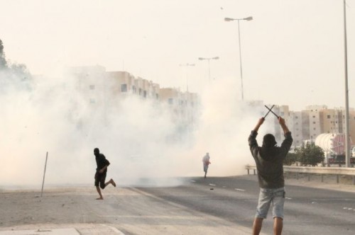 Clashes broke out between demonstrators and regime forces that besieged the villages since last night, as a helicopter flew intensively over the area .Government forces cracked down on protesters who staged rallies, this morning, across the Bahraini Kingdom. Some striking pictures were taken of police officers carrying guns with live bullets.