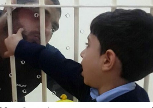 As for another opposition tweeter, he posted a picture of the son of detainee Mohammad Ramadan, who is on death row, as he attempts to touch his father's face from a hole in the glass barrier.