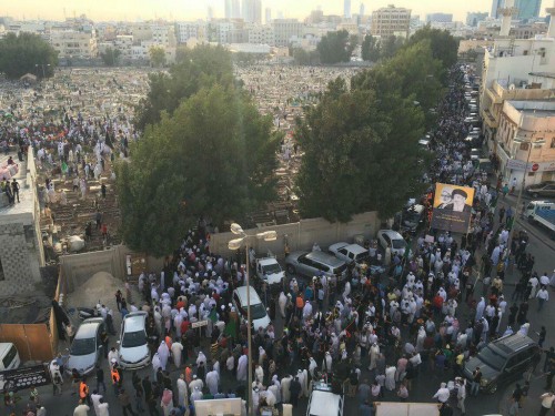 The march, in which top Bahraini clerics joined namely Ayatollah Sheikkh Isa Qassem, was held from Ras Rouman to his grace in Al-Houra cemetery in the Bahraini capital Manama.