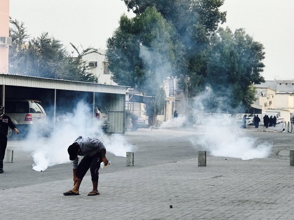The authorities claim that they received a notice stating that about 7 thousands people staged an unlicensed protest in Diraz on Friday at 1 PM. The security forces arrived to the scene and hurled tear gas against them. A bomb blasted near the main entrance of the region which caused damages to a salon for men, an apartment and left an injured policeman.