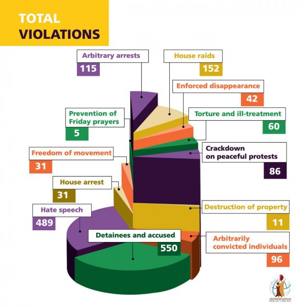 The report stated that the authorities arrested 115 citizens in arbitrary way and the 42 of them were subjected to forced disappearances. Meanwhile, 96 citizens received arbitrary sentences which amounted to 599 years and 11 months in prison.