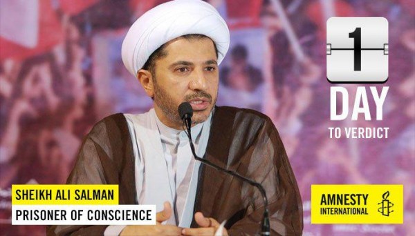 Amnesty Reiterates Its Call to Release Sheikh Ali Salman on Eve of his Sentencing Verdict