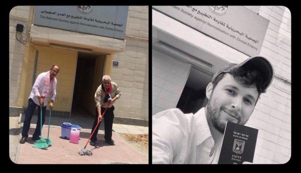 Bahrain Mirror (Exclusive): A selfie photo of an Israeli military man holding his passport in front of "The Bahraini Society against Normalization with Zionist Entity" building angered Bahrainis, who deemed it a provocation against their rejection of the so-called "Peace to Prosperity" workshop and Zionist presence in their country.