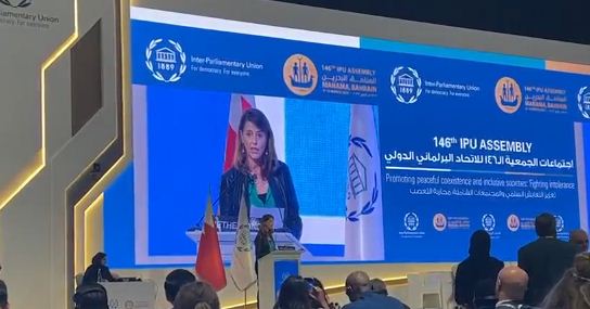 She called on the IPU president to re-consider the letter sent by human rights organizations regarding banning the entry of HRW representatives to Bahrain.