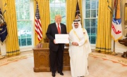 The son of Bahraini Minister of Interior, Abdullah bin Rashid Al Khalifa, presented his credentials to US President Donald Trump as Ambassador of his country in Washington, on Saturday July 22, 2017.