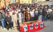 Thousands of Bahrainis took part (Tuesday February 21, 2017) in the funeral of Martyr Abdullah Al Ajouz, who was killed by regime forces in an arrest attempt Monday dawn, in the Nuwaidrat village, south east Manama.