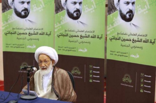 وقال قاسم، في كلمته خلال اعتصام تضامني مع الشيخ حسين النجاتي أمس الأربعاء، بعد تعرضه للضغط لمغادرة البحرين بعد سحب جنسيته مع 30 شخصاً آخر، قال "ما يجري هو التأكيد أن المسيرات والاعتصامات وجميع المظاهر التي يقوم بها الشعب أن تكون سلمية ومراعية على مصلحة الوطن والحفاظ على الممتلكات"، موضحا "لا يسمح لنا ديننا ولا جديتنا والكلام على مستوى الشعب المعارض أن يأتي شيخ من الممارسات الاحتجاجية من منطلق العبث أو لتمضية الوقت أو للتأجيج".