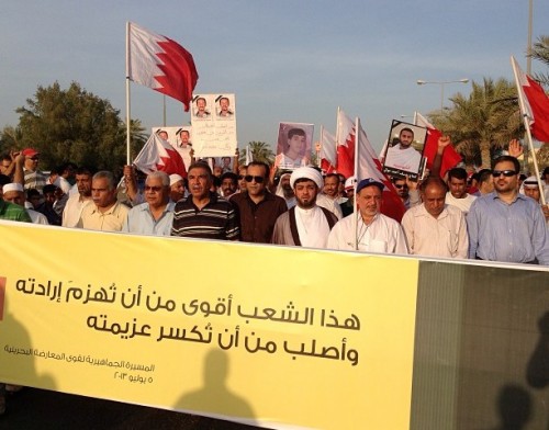 وقالت القوى الوطنية في البيان الختامي لتظاهرة حاشدة غرب العاصمة المنامة اليوم 5 يوليو/ حزيران 2013، إن البحرين أمام مشكلة الاستحواذ على كل السلطات والثروات وأي حل لا يعيد السلطات والثروات للشعب بشكل حقيقي يعني بقاء الاستبداد وغياب العدالة واستمرار غياب الدولة.