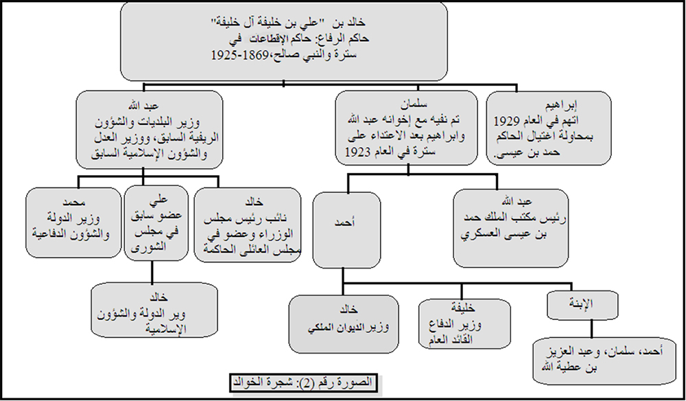 لذلك لم تشأ الإدارة الاستعمارية أن تعيد تمكين المعارضين العسكريين لهذه الإصلاحات. ولم تكن فقط الحواجز السياسية هي التي منعت أبناء الشيخ خالد من المشاركة في السلطة بل أيضًا فقدانهم للأهلية لإدارة بيروقراطية جديدة، كونها تتعارض مع العهد الإقطاعي للشيخ عيسى. ولم يَلِق بعبد الله بن خالد في العام 1967 إلّا تعيينه وزيرًا للبلديات والشؤون الريفية. هذا التعيين يعزز وجهة النظر تلك.(25)