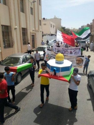 التظاهرات انطلقت في مناطق ومدن مختلفة تنديدا بالاحتلال الاسرائيلي، مؤكدة على وقوف الشعب البحريني إلى جانب الشعب الفلسطيني، وحقه في كامل تراب أرضه فلسطين.