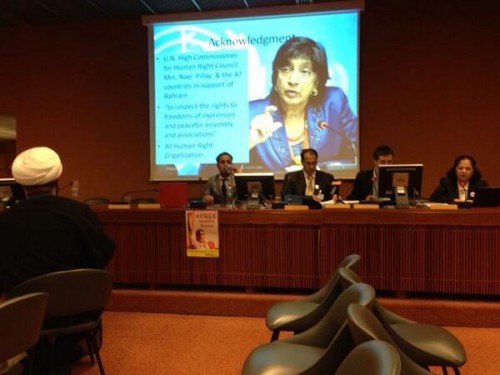 مرآة البحرين: بدأت في قصر الأمم المتحدة بجنيف ظهر اليوم الاثنين 16 سبتمبر/ أيلول أعمال ندوة جانبية لمناقشة انتهاكات حقوق الإنسان في البحرين على هامش انعقاد الدورة الرابعة والعشرين لمجلس حقوق الإنسان. ويشارك في الندوة التي تنظمها منظمة «هيومان رايتس ووتش» بالتعاون مع «المرصد البحريني لحقوق الإنسان» كل من المحامي محمد التاجر والدكتورة رولى الصفار والحقوقي السيد يوسف المحافظة إضافة إلى الباحث المختص في شئون الخليج بـ«هيومان ريتس ووتش» نيكولاس مجيهان.
