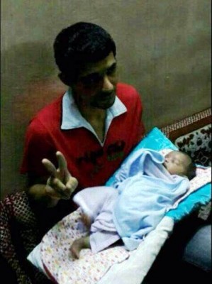 والتقطت أمس صورة لمعيوف مع مولوده الصغير وهو يرفع شارة النصر، بعد أن أفرجت السلطات الأمنية عنه، لكنه ينتظر محاكمته التي قد تبعده عن مولوده الجديد (مهدي) وأخيه الأكبر ذي السنتين (أحمد).