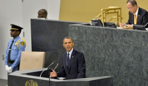 أوباما دعا خلال خطاب له أمام الجمعية العامة للأمم المتحدة في نيويورك إلى ضرورة العمل على حل القضايا في البحرين وسورية والعراق،  قائلا "الولايات المتحدة ستعمل على حلها، وعلى المجتمعات الإسلامية التدخل لحلها أيضا".