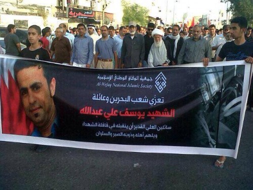 مرآة البحرين (خاص): اختتمت اليوم مراسم عزاء الشهيد يوسف النشمي (31 عاما) بمشاركة حشود واسعة رددت شعارات مناهضة للملك حمد بن عيسى آل خليفة، وحملته مسؤولية الانتهاكات التي ترتكبها الأجهزة الأمنية.