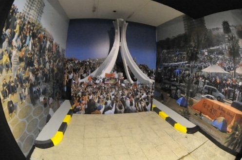 كما عرض في المعرض تمثال بالحجم الطبيعي لضابط شرطة مسلح ومقتنيات شخصية لمتظاهرين قتلتهم قوات الأمن وعبوات فارغة لقنابل مسيلة للدموع استخدمت في فض الاحتجاجات.