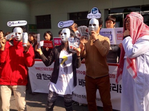 مرآة البحرين: واصل نشطاء كوريين يمثلون 31 منظمة تدعو للسلام وتعارض بيع الأسلحة للحكومة البحرينية احتجاجاتهم في العاصمة سيول، حيث أقاموا اليوم مؤتمرا صحافيا حضرته الصحافة الكورية وأدروا بيانا رفضا لاستكمال صفقة تزود شركات كورية بموجبها البحرين بشحنة تفوق 1.5 عبوة من الغازات.