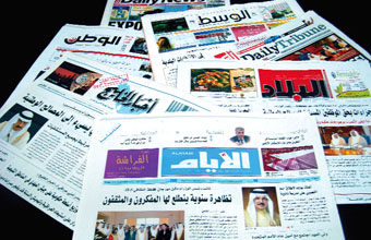 مرآة البحرين (خاص): برز في الصحف الصادرة في البحرين اليوم الأربعاء خبر "إعادة تموضع" قوات "درع الجزيرة" في المملكة وفق ما أعلن مسؤول سعودي لـ"فرانس برس"، وبرز أيضاً خبر الإفراج عن 28 من الكوادر الطبية ممن اتهموا بقضايا أمنية (جنح)، في مقابل قيام مجلس النواب بفصل 20 موظفا جديداً. كما برز خبر مشاركة ممثلين عن الحكومة في حوار التوافق الوطني، وكذلك جلسة الحكومة الاستثنائية اليوم.