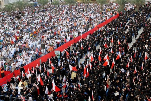 عشرات الآلاف يعتصمون في البحرين بالتزامن مع منتدى حوار المنامة: ادعموا مطالب الشعب