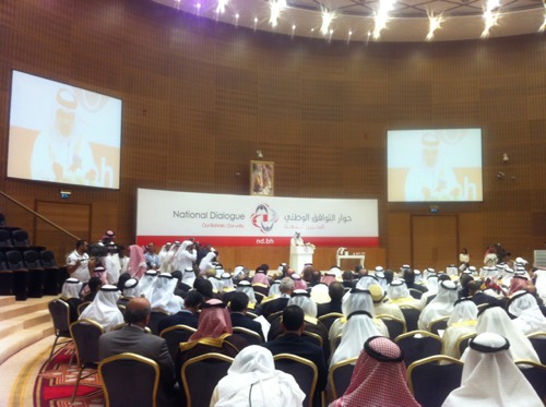 افتتح رئيس الحوار خليفة الظهراني المؤتمر. حدد السقف: التوافق بين جميع مكونات المجتمع. والهدف: التقريب بين وجهات النظر للخروج بمرئيات وقواسم مشتركة. كما رسم شكل النهاية: سيقوم منسقو الجلسات برفع النتائج إلى رئيس حوار التوافق الوطني، بما فيها من نقاط الاتفاق أو الاختلاف، ثم يقوم الأخير برفعها إلى عاهل البلاد ليحيلها إلى المؤسسات الدستورية التي سيكون عليها اتخاذ الإجراء اللازم بشأنها، كل حسب اختصاصه. هو ذا إذن شكل الحوار ومعناه.