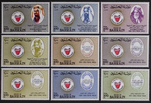 وتضمنت الطوابع أسماء الشيوخ الذين حكموا البحرين منذ غزوها عام 1783، قبل أن يتم سحبها، لتعارضها مع فكرة الدولة كما يقول المدون علي عبدالامام.