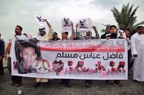 وقال المركز، في بيان، إن "مقتل أول ضحايا إحتجاجات البحرين للعام 2014 وهو الناشط فاضل عباس مسلم، تم بطلق ناري مباشرفي الرأس كما بينت الصور التي التقطت له أثناء مراسم تغسيلة وتكفينة حيث ظهر بوضوح ثقب غائر في مؤخرة الرأس من جراء إطلاق النار، كما ظهر بوضوح آثار الضرب بسياط أو ما شابه على ظهره".