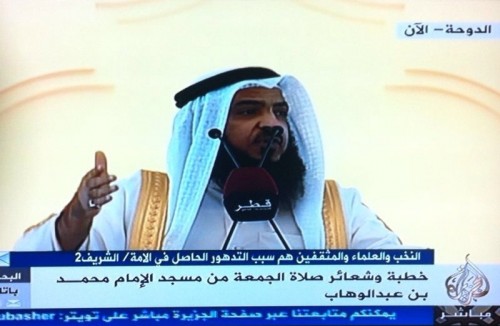عادل المعاودة من فوق منبر «القرضاوي» في الدوحة: جاهدوا ضد «حوثيي اليمن» و«قرامطة البحرين»!