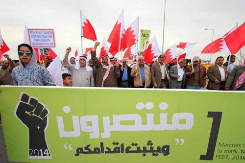 وقالت قوى المعارضة في البحرين في نهاية المسيرة الجماهيرية ضمن مرحلة التصعيد السلمي الميداني في شهر فبراير إن حكومة التعيين دلاله قاطعة على استمرار الفساد المالي والإداري وغياب الإرادة الشعبية وانعدام إمكانية قيام الدولة الحقيقية التي تحكمها المواطنة وتتأسس على أسس العدالة والحرية المساءلة.