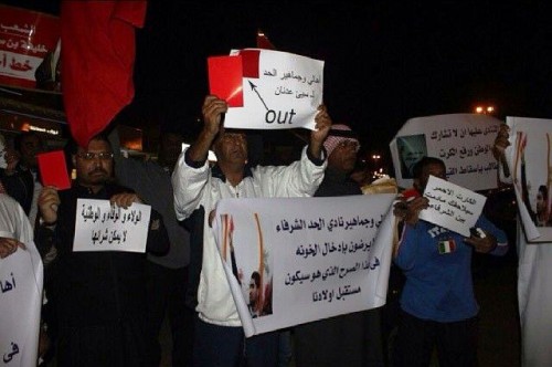 مرآة البحرين (خاص): انتشرت صور على موقع التواصل الاجتماعي تويتر، لمجموعة من المحتجين رفعوا لافتات ترفض توقيع نادي الحد الرياضي عقدا مع لاعب منتخب كرة القدم السابق السيد محمد عدنان.